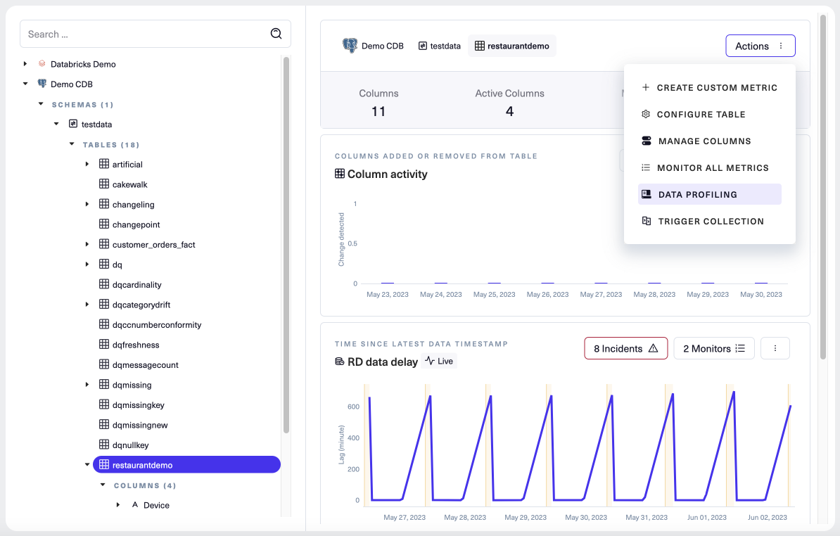 After data profiles are generated, you can review them to help you plan your data quality analysis. For example, reviewing a table's profile will clarify which columns can be used for timestamps in metrics.